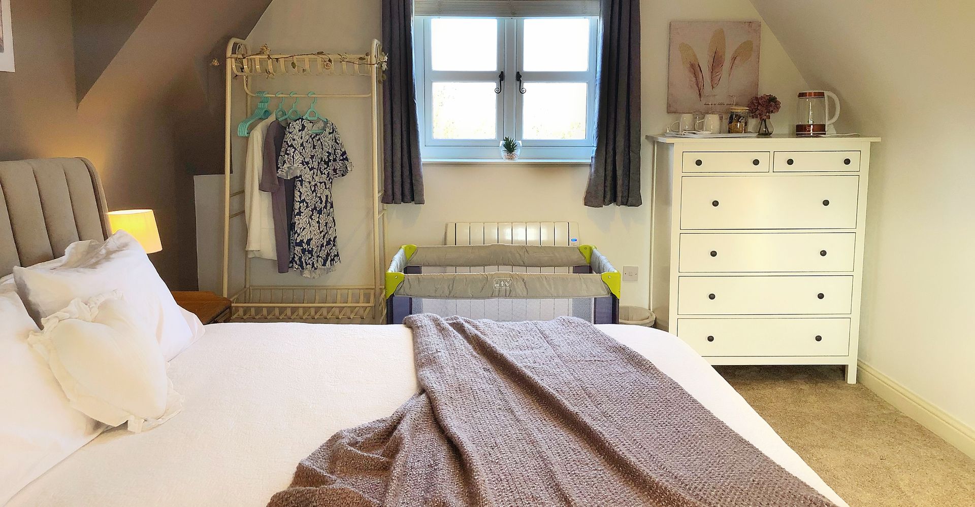 Originally built as separate cottage The Loft now links to the main farm house via two locked doors, it is self contained and only the guests who have booked The Loft have access to it. Accessed by it’s own private entrance, downstairs you will find our recently installed kitchen. Upstairs leads to your large comfortable bedroom with a super-king sized bed, aptly nicknamed the 'bed of dreams' by some of our guests, cuddle chair, and smart TV.